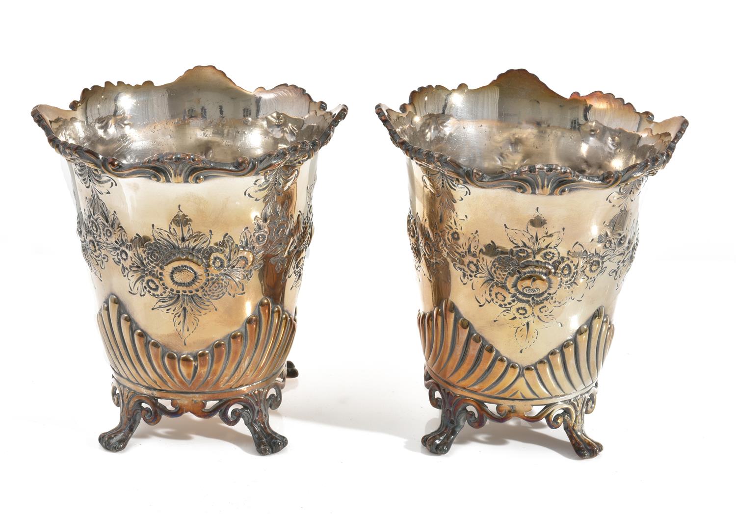 TWO SILVERPLATED VASES WITH FLORAL AND SHELL MOTIF