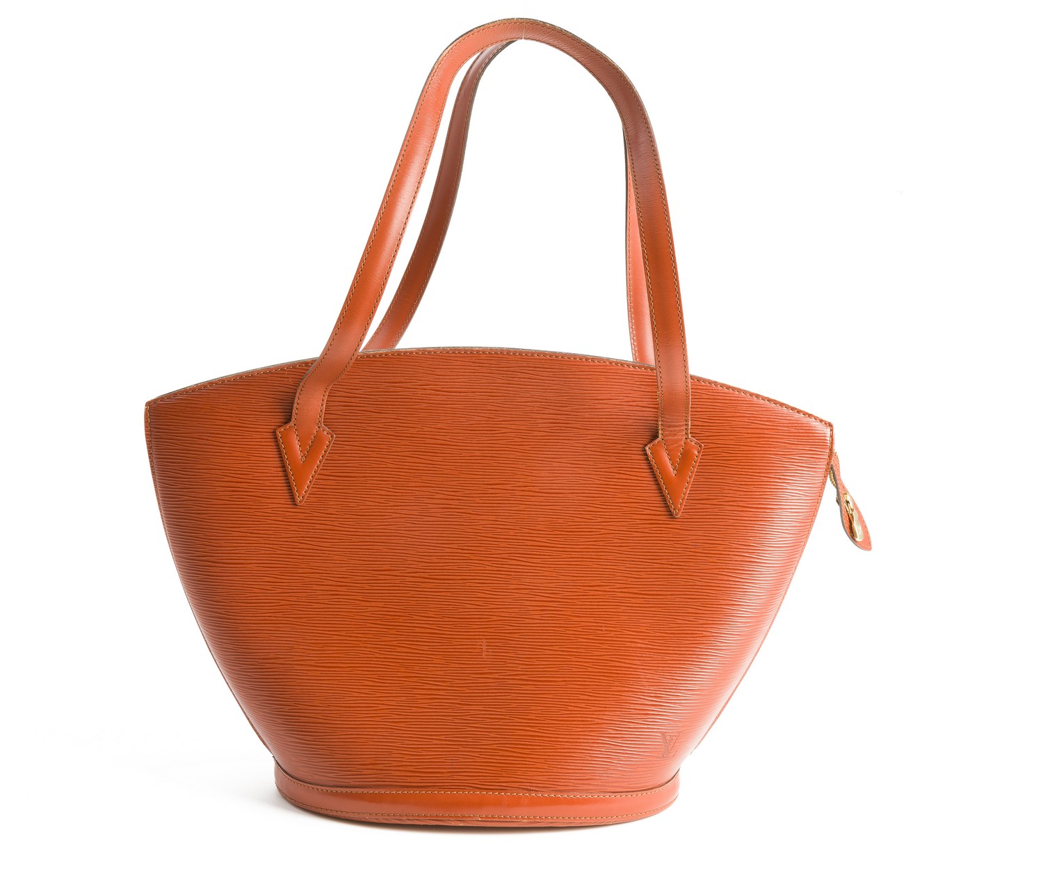 Styled in tan Epi leather with leather handles and gold metal hardware, 26 x 30 x 17cm.