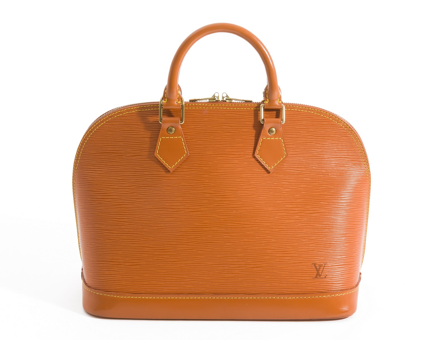 Styled in tan Epi leather with leather straps and gold metal hardware, 30 x 23 x 15cm.