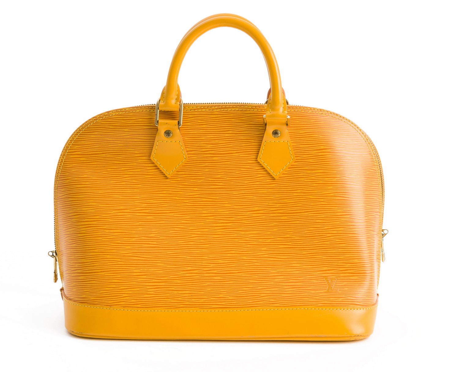 Styled in yellow Epi leather with leather straps and gold metal hardware, 30 x 23 x 15cm.
