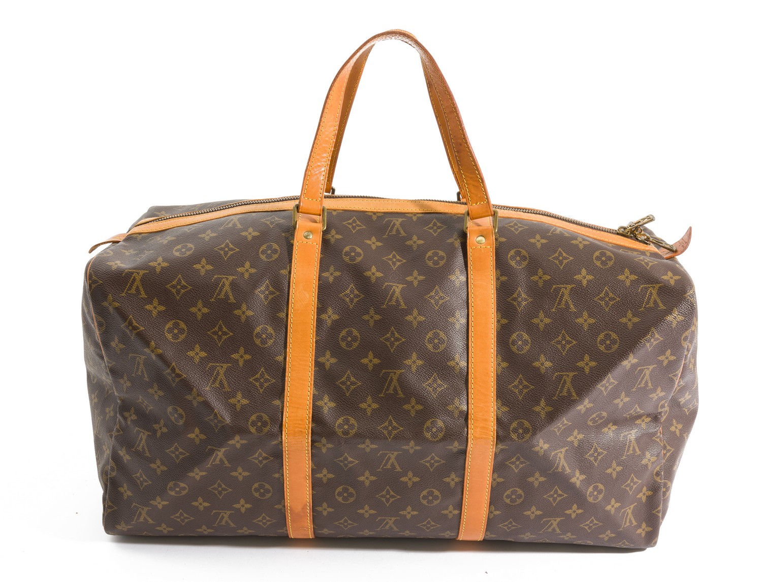 Styled in monogram canvas with tan leather straps and gold metal hardware, 55 x 28 x 24cm.