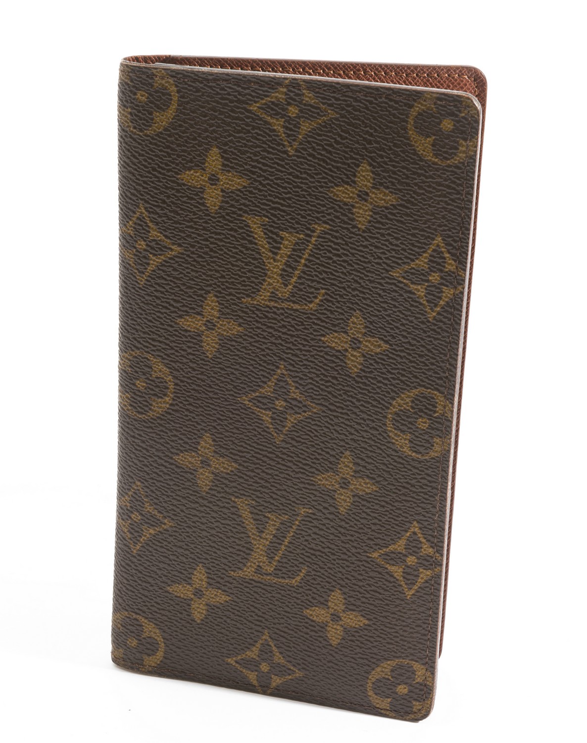 Styled in brown monogram canvas with gold metal hardware, 10 x 18 x 1cm.