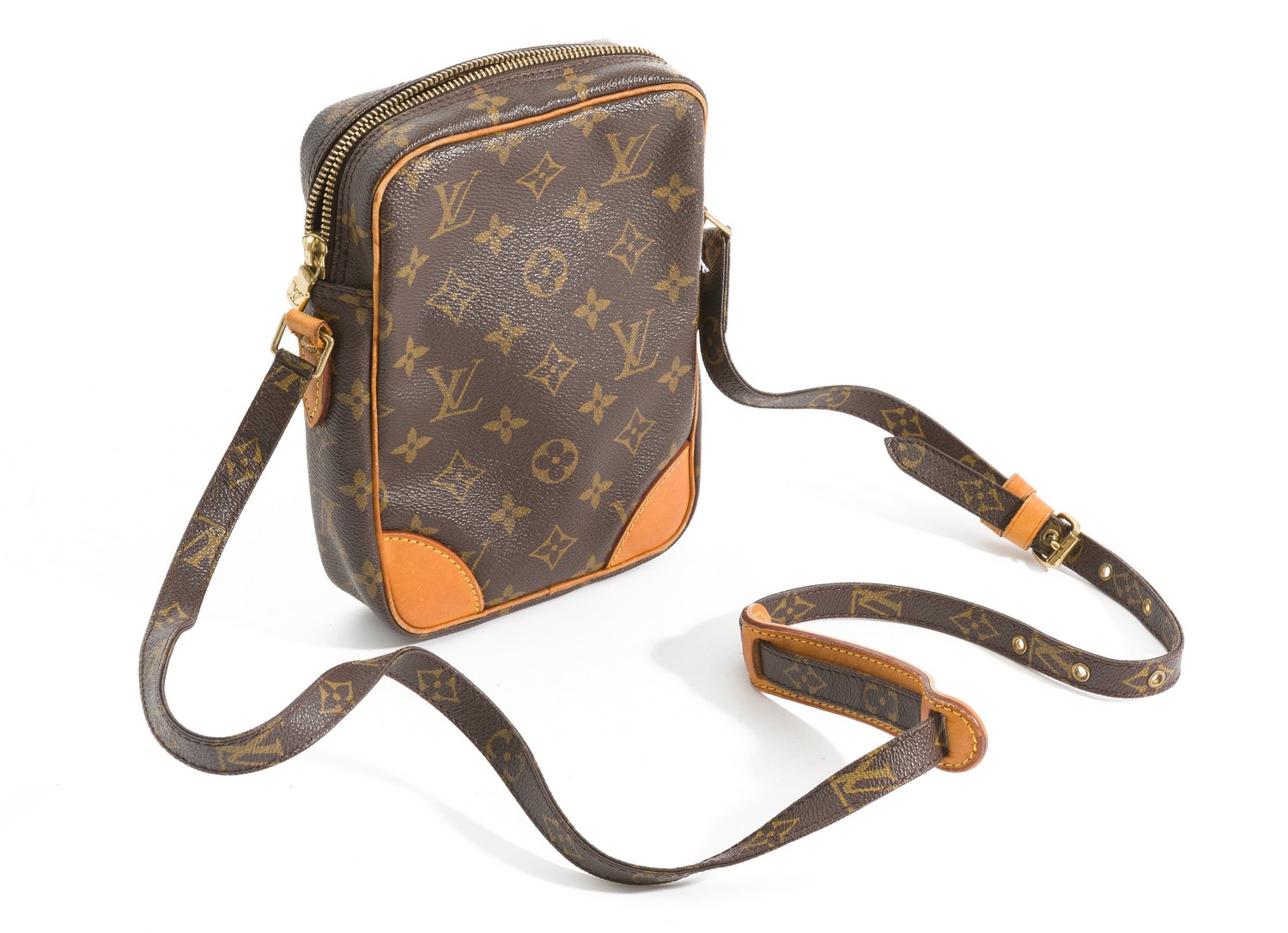 Styled in monogram canvas with canvas trim and gold metal hardware, 15 x 20 x 4cm.