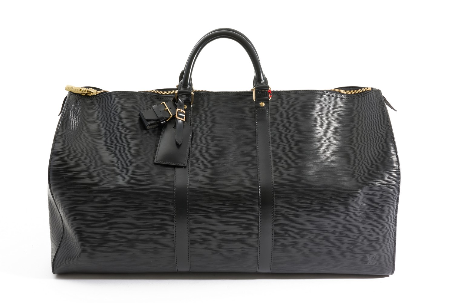 Styled in black Epi leather with black leather straps and gold metal hardware, 55 x 31 x 26cm.