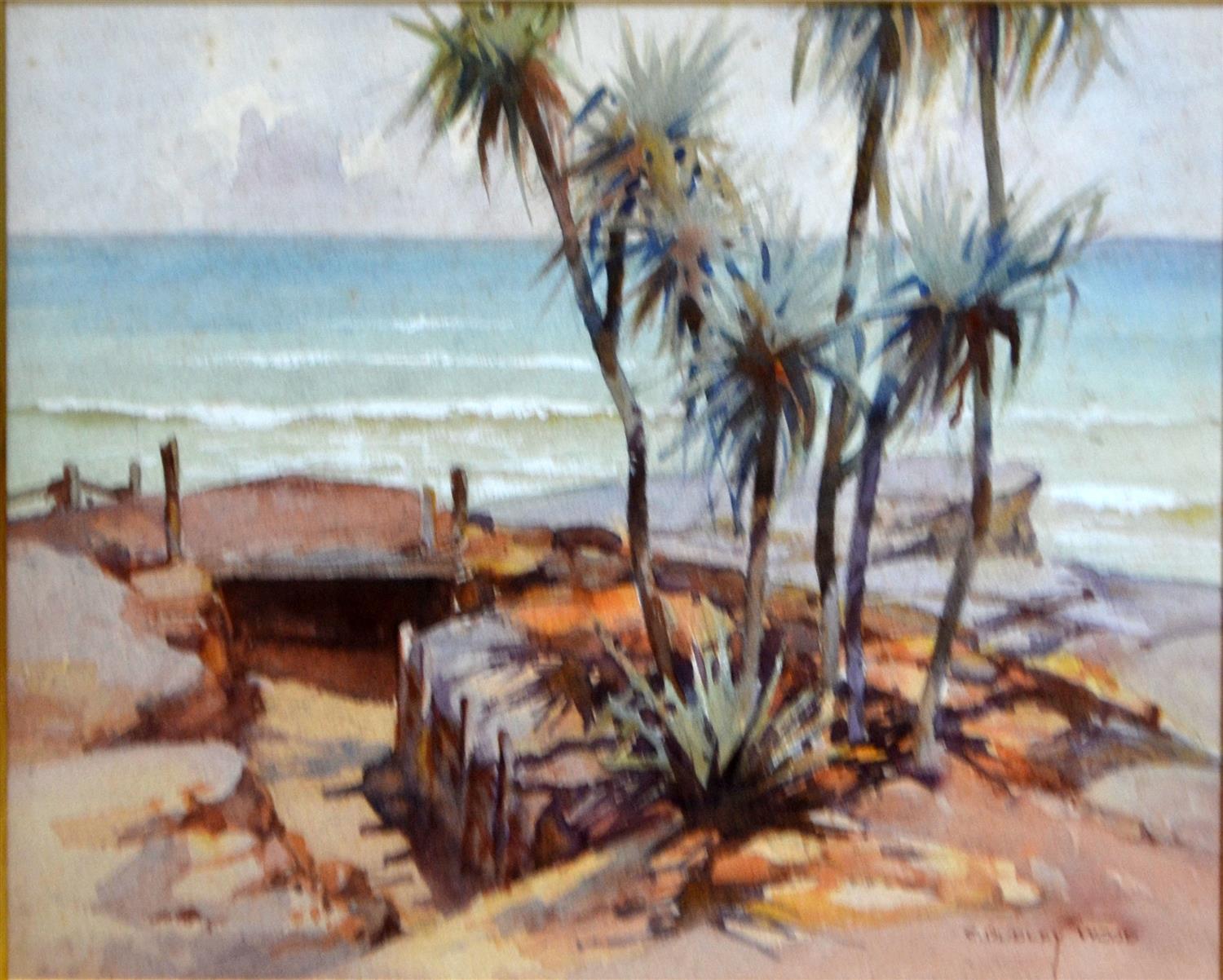 C. DUDLEY WOOD, 'TRENCHES - TIMOR SEA, DARWIN', WATERCOLOUR, 33 X 39 CM, PAINTED PRIOR TO 1943, SIGNED LOWER RIGHT, EXHIBITED MYER MURAL HALL, 1943
