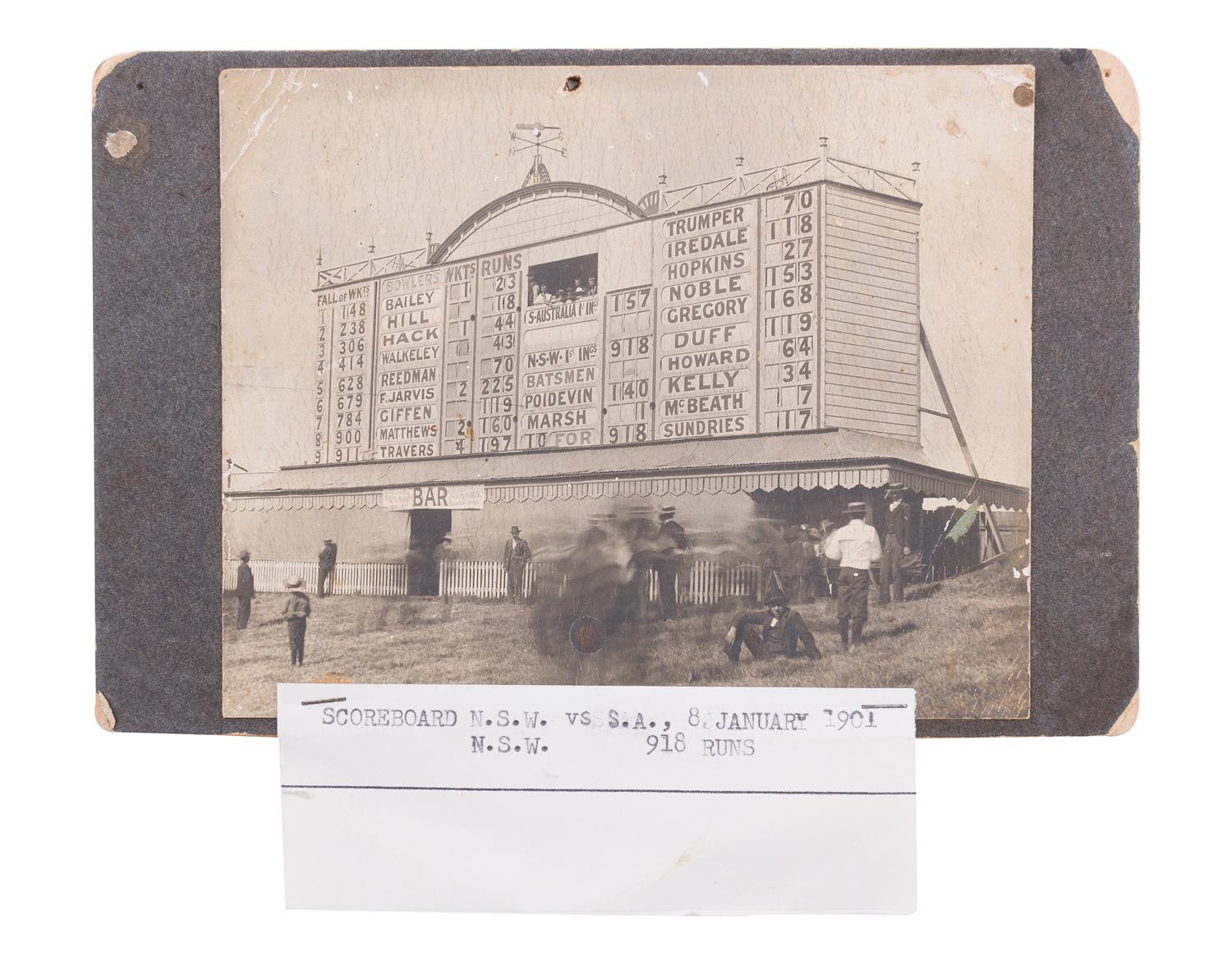 A PHOTOGRAPH OF THE SCOREBOARD NSW VS SA, JANUARY 1901, EX MONTY NOBLE COLLECTION