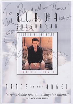 AN AUTOGRAPHED TILE SIGNED BY CLASSICAL GUITARISTS MILOS KARADAGLIC WITH TWO POSTERS MOUNTED ON BOARD SIGNED SLAVA GRIGORYAN (X 2)