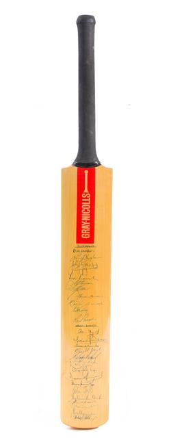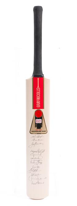 TWO GRAY NICHOLLS CRICKET BATS, ONE SIGNED BY THE 1984-85 WORLD SERIES CUP AUSTRALIAN TEAM, THE OTHER SIGNED BY WEST INDIES AND AUSTRALIAN TEAMS