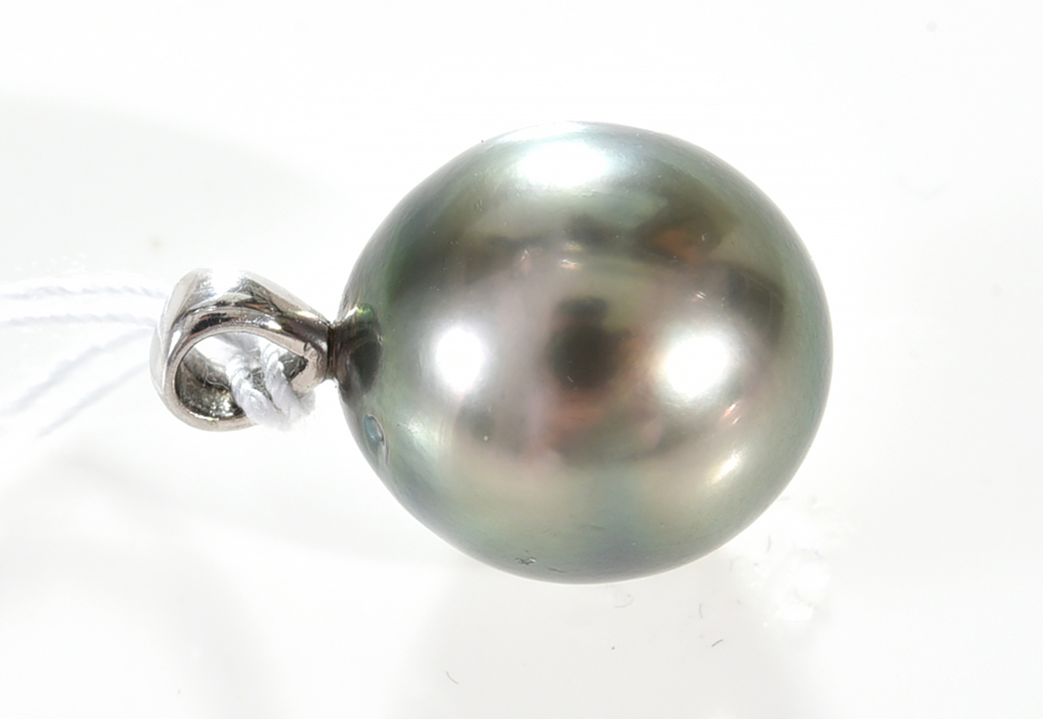 A TAHITIAN PEARL ( 14MM) PENDANT, THE BALE IN 18CT WHITE GOLD (TO A DISPLAY CHAIN)