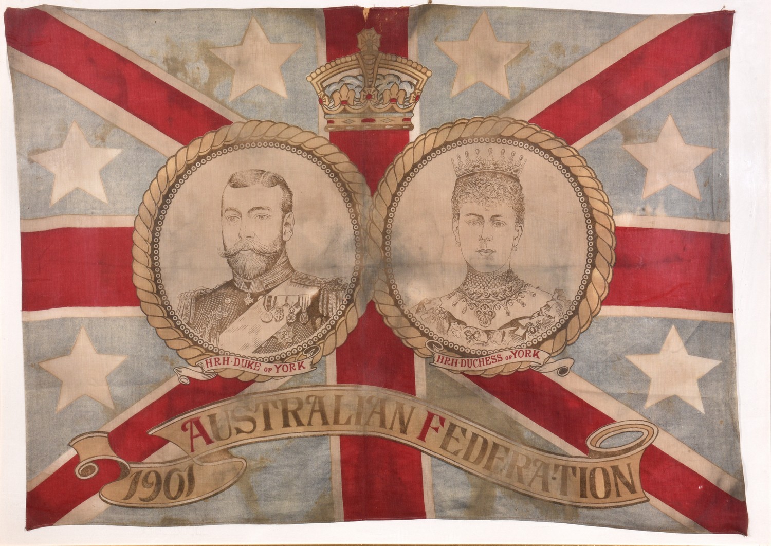 Fading to flag consistent with age, small tear on top edge in center and minor fraying along top.