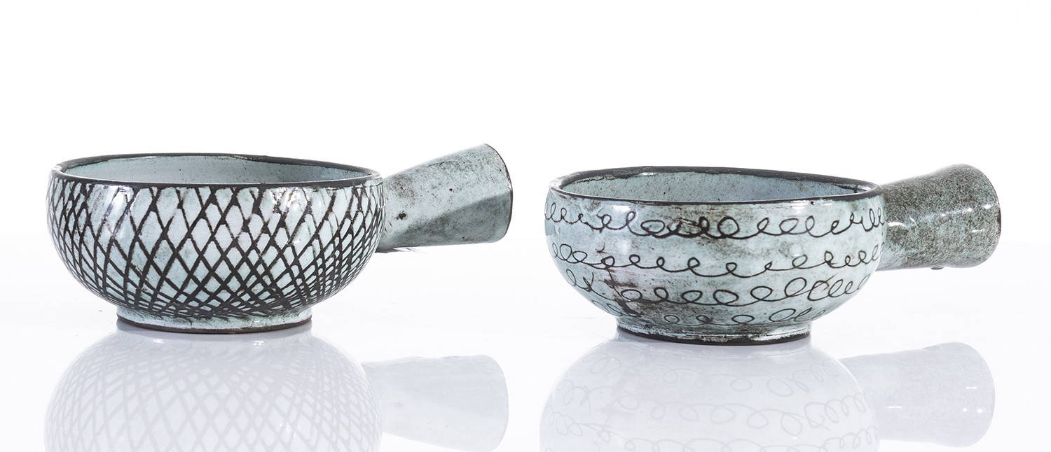 TWO SCRAFFITO TERRACOTTA DAVID AND HERMIA BOYD RAMMEKINS - 4.9 CM HIGH