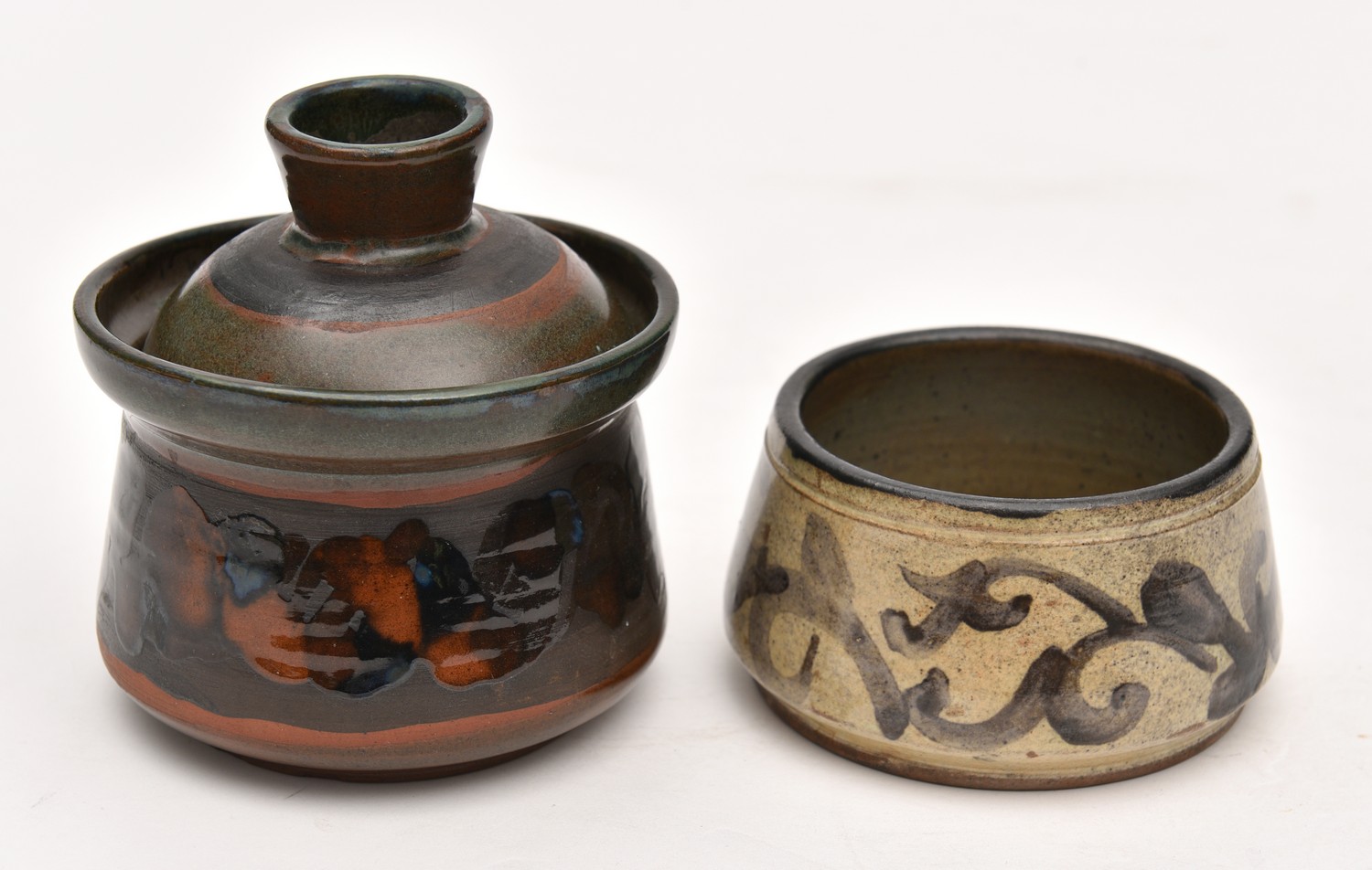 A LIDDED DISH AND A BOWL BY DAVID AND HERMIA BOYD - 11.4 CM & 5.7 CM HIGH