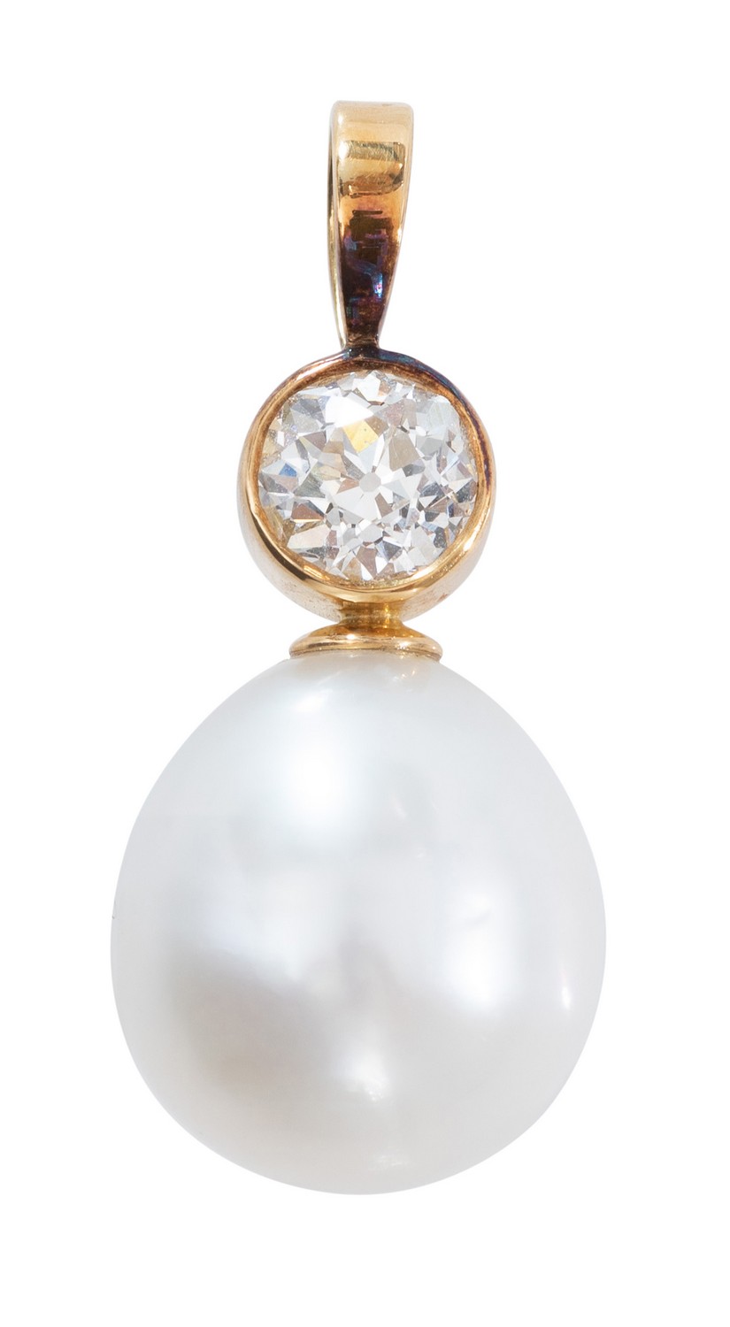 The pendant presents in very good condition. The pearl is in very good order and the diamond is securely set. Diamond colour H, Clarity VS2. Total weight 3.7gms.