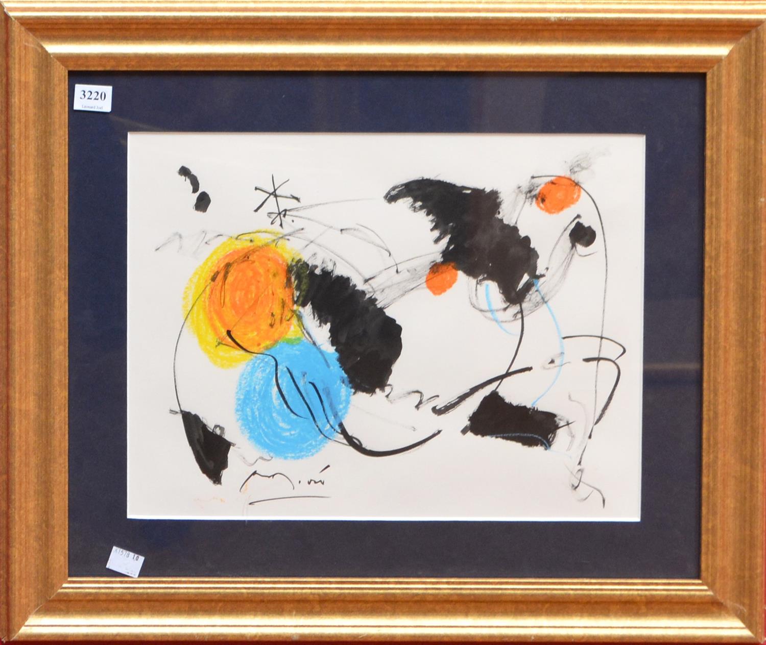 AFTER JOAN MIRO, UNTITLED, MIXED MEDIA ON PAPER, 27 X 36CM, FRAME: 46 X 54CM, CONDITION: VERY GOOD