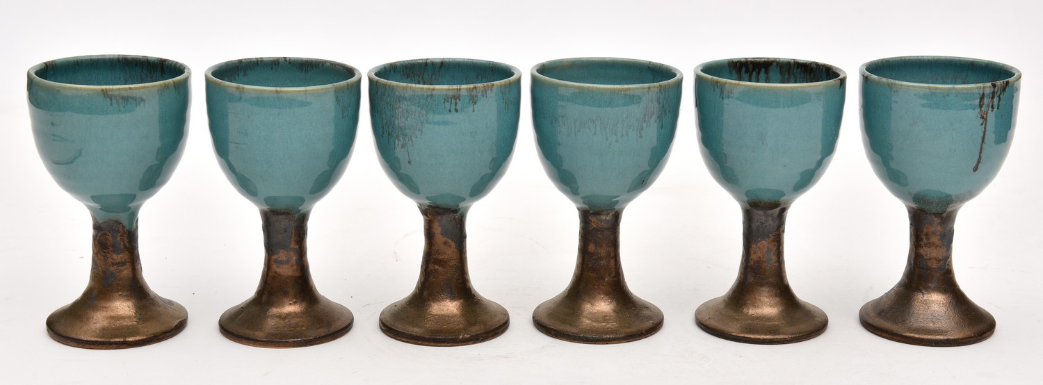 A SET OF SIX HATTON BECK GOBLETS - 14.0 CM HIGH