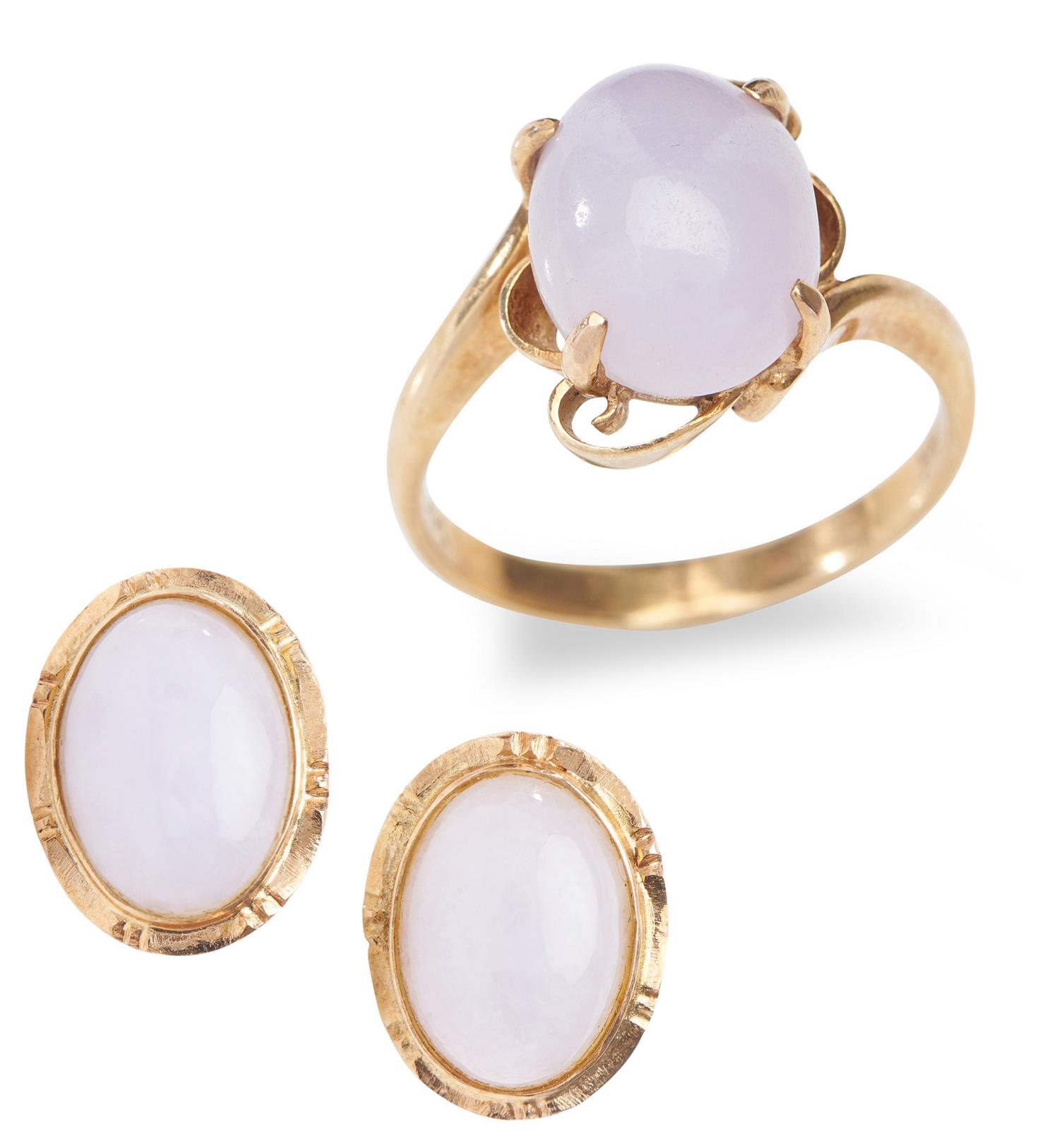 Overall condition is very good. All stones secure in their settings. Lavender Jadeite showing evidence of treatment. Earrings to post and butterfly fittings.