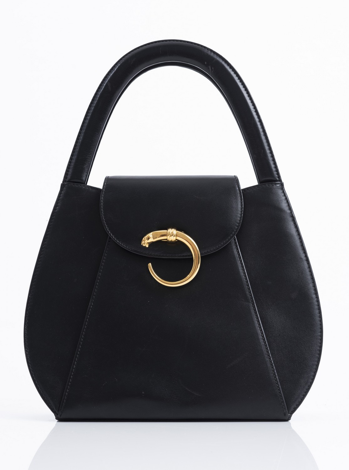 Styled in black leather with gold metal hardware, 22 x 29 x 6cm.