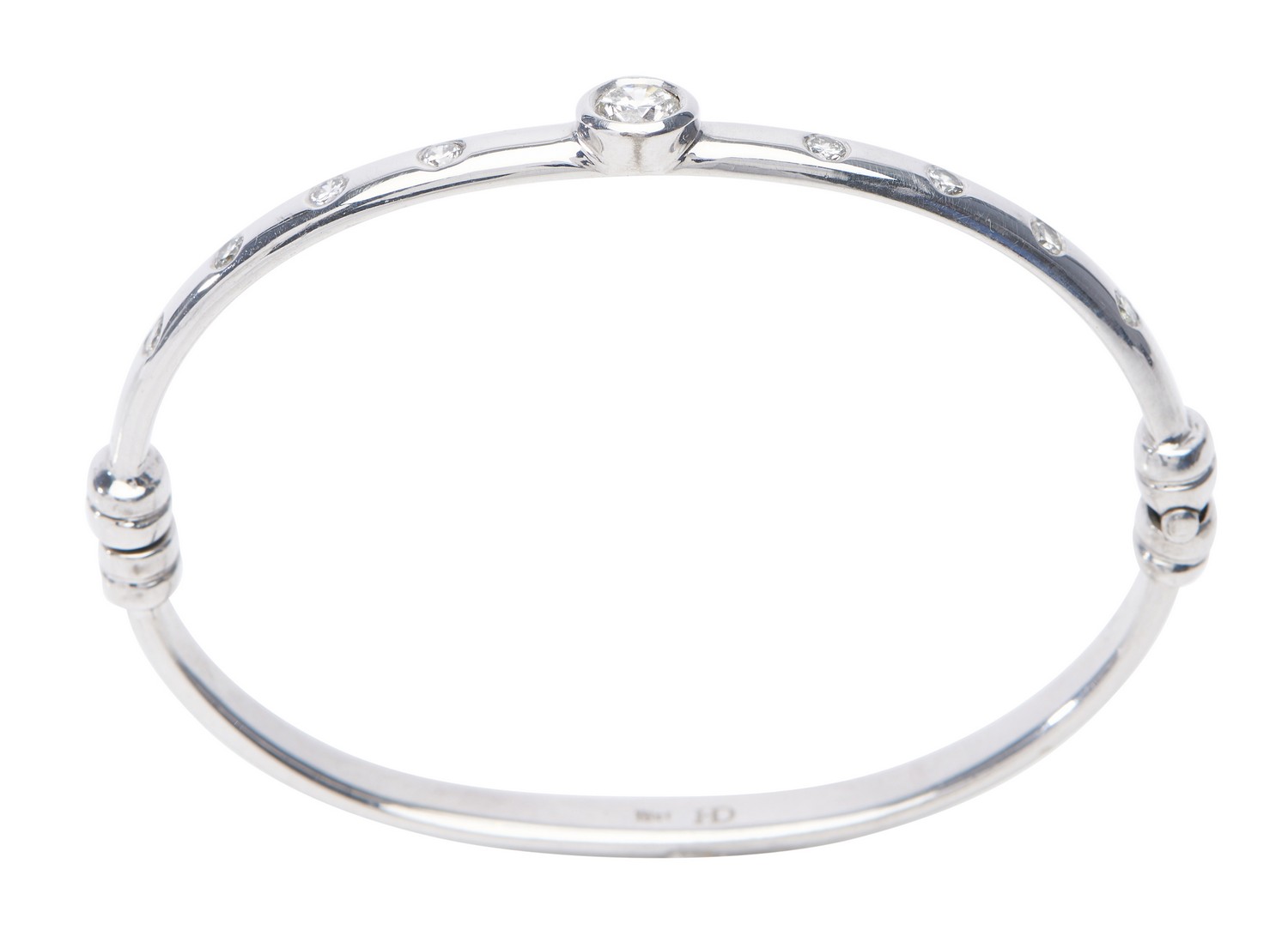 The bangle presents in very good condition and only minor evidence of wear. The centre stone is graded as H/VVS2 and further diamonds as F-H/VS1-SI1.