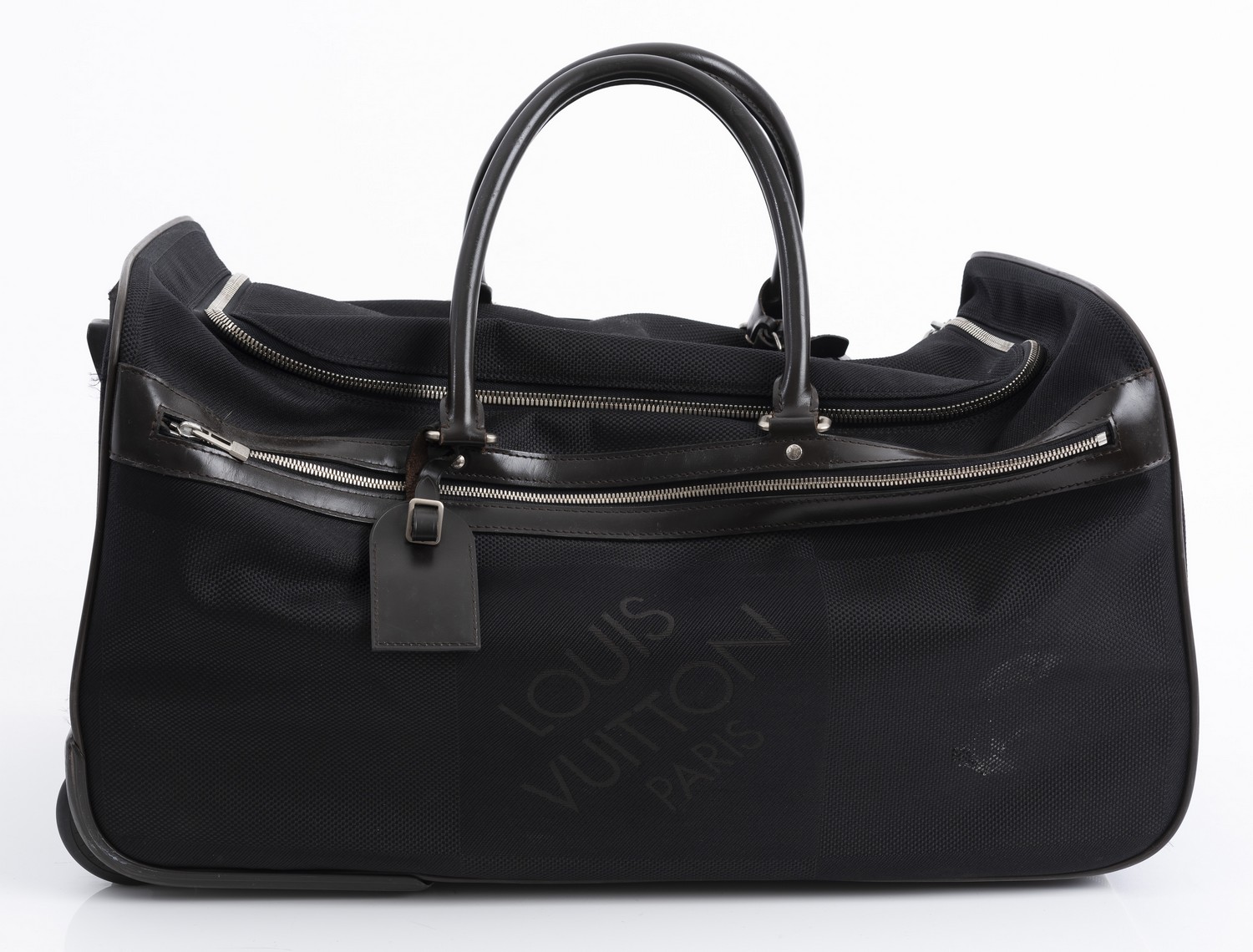 Styled in black Damier Geant canvas with chocolate leather trim and silver metal hardware, 32 x 60 x 32cm.