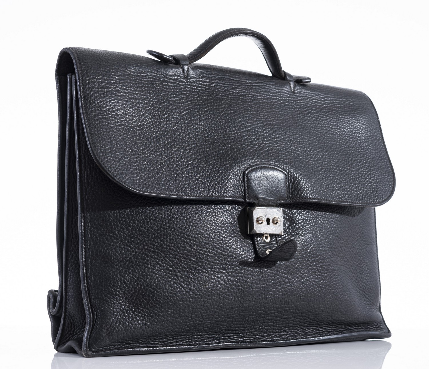 Styled in black Clemence leather with palladium metal hardware, 30 x 38 x 7cm .