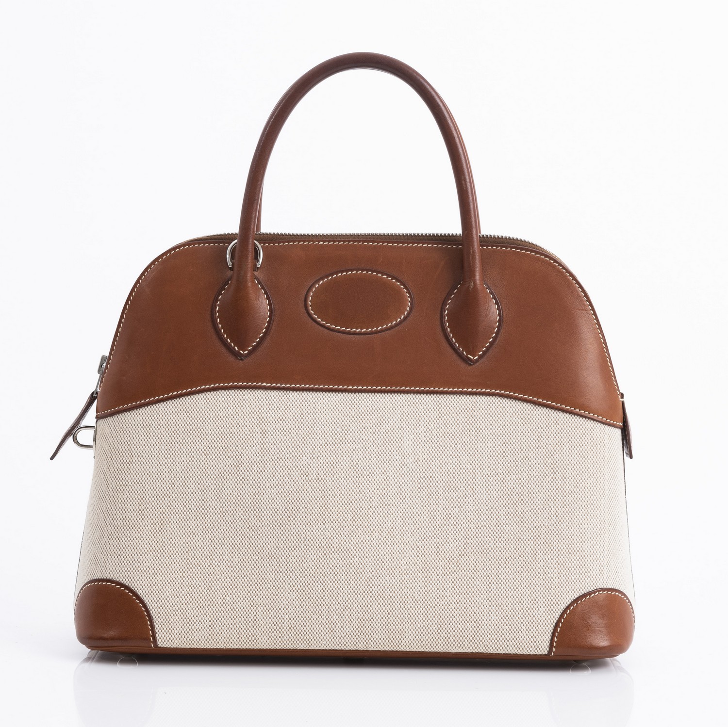 Styled in 'Toile H' canvas with 'Terre' Epsom leather trim and gold metal hardware.