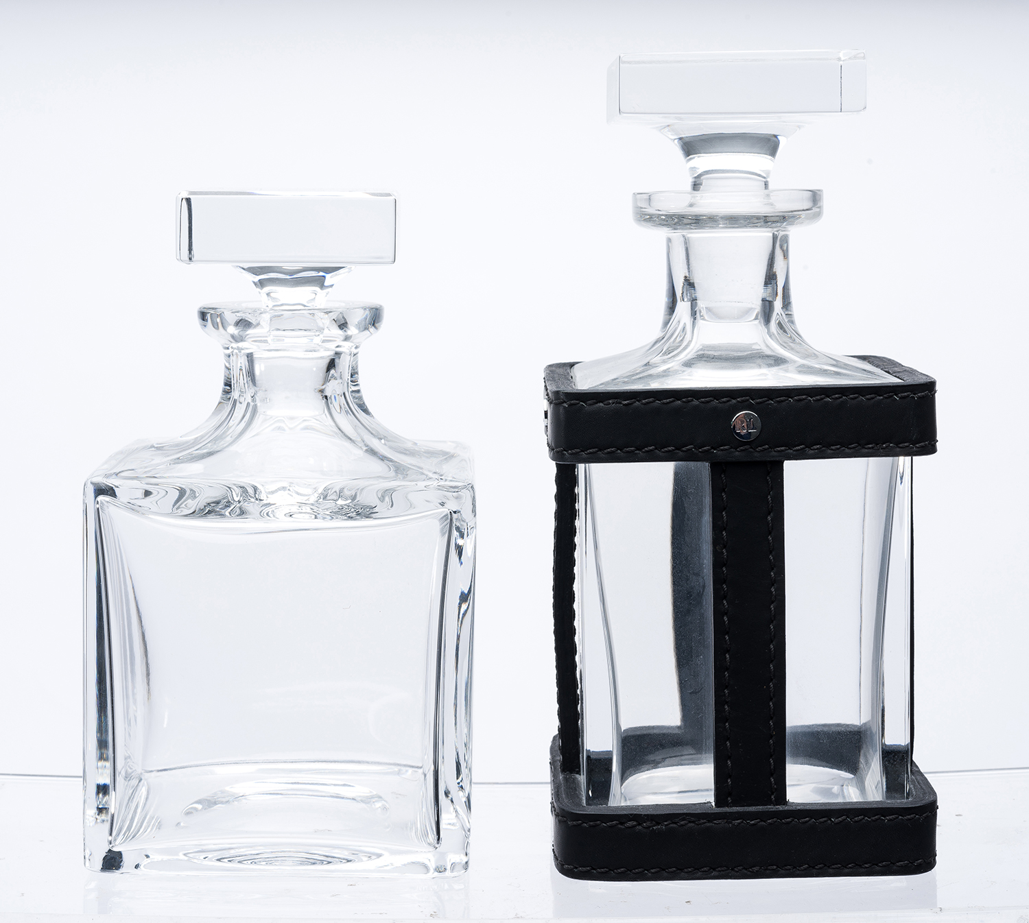 TWO GLASS DECANTERS BY RALPH LAUREN