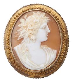 The brooch presents in very good condition overall. The cameo is intact and in good order. The frame is all in good order and glazing to reverse is intact.