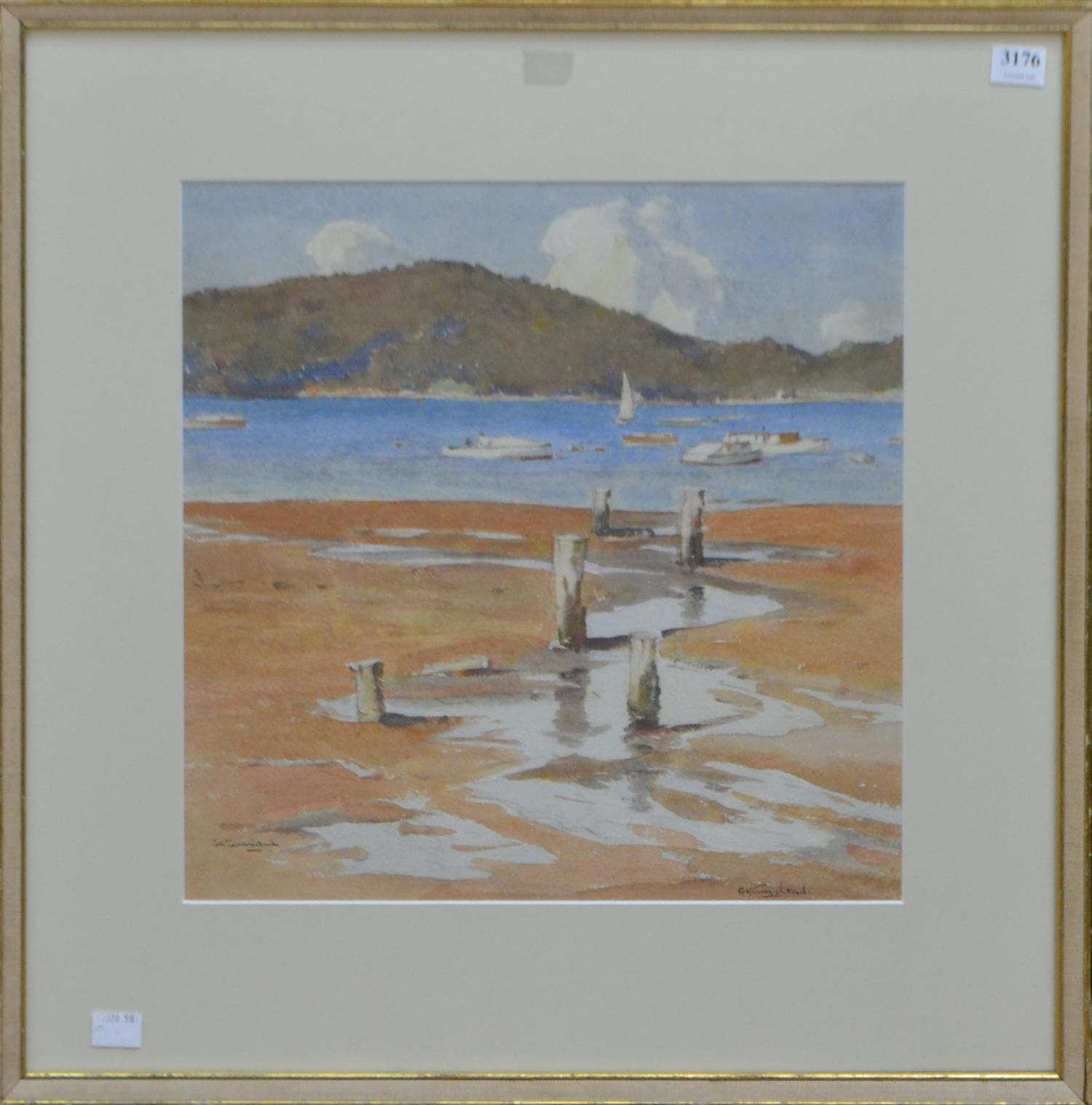 GEOFFREY KEITH TOWNSHEND, COASTAL SCENE, WATERCOLOUR, 34 X 34CM, FRAME SIZE: 52 X 51CM, CONDITION: MINOR FOXING, OTHERWISE GOOD CONDITION