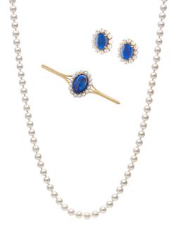 The suite presents in very good order overall. The pearls are of a high lustre and in very good condition. The clasp is in good order with only minor wear evident. The earrings are in very good order. The pin fitting on the brooch presents with a bend, however remains secure when closed.