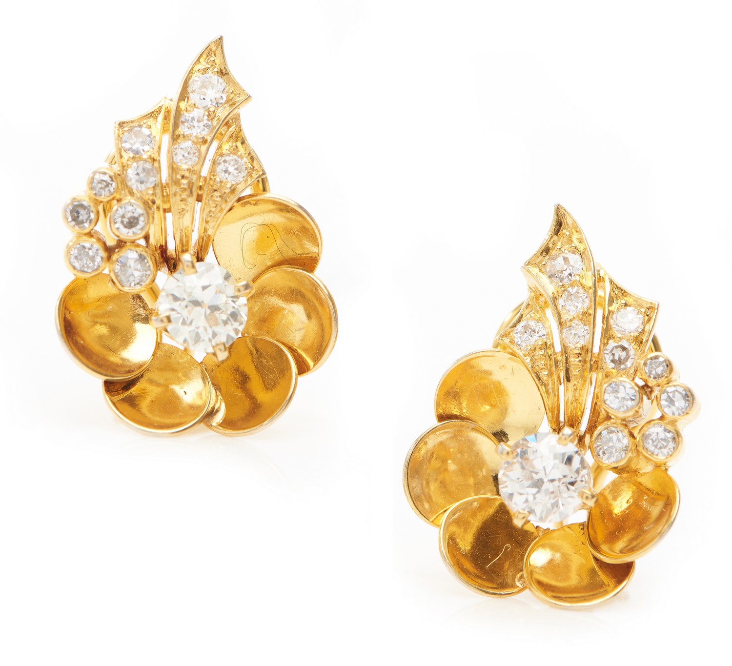 The earrings present in very good condition with some very minor evidence of wear. The diamonds are all in good order and secure.