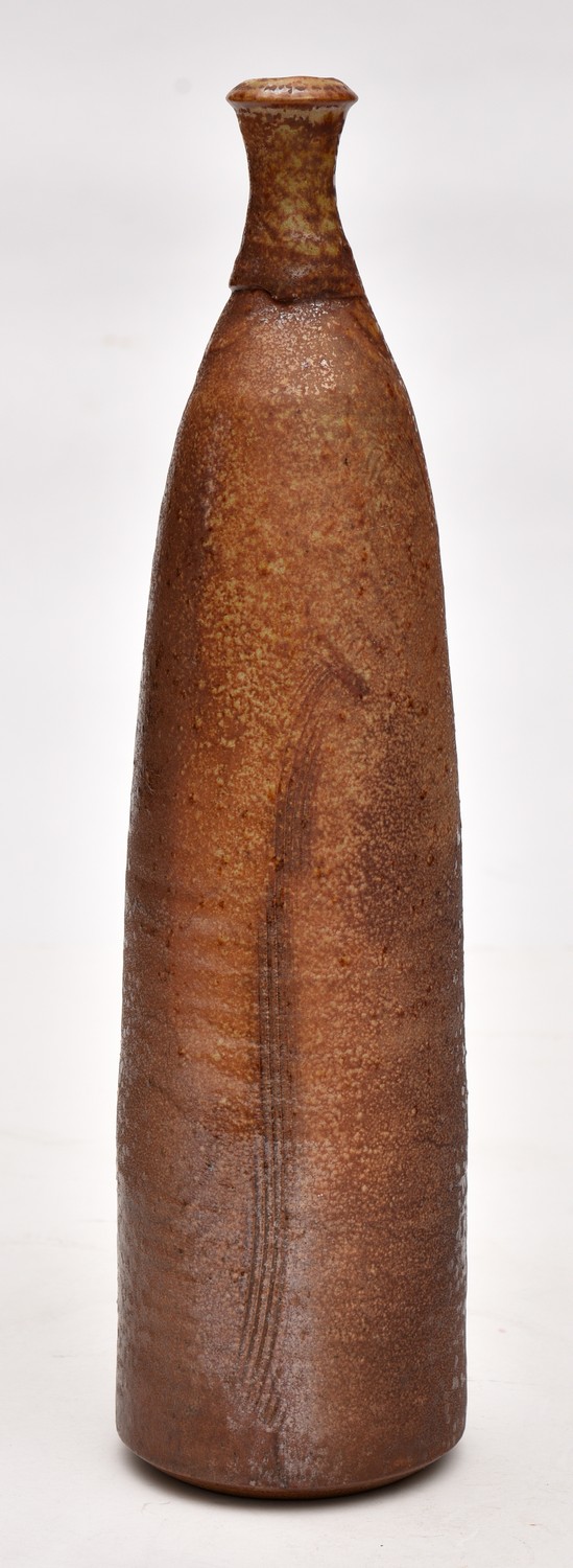 A PETER ANDERSON EARTHENWARE LONG VASE - 37.4 CM HIGH