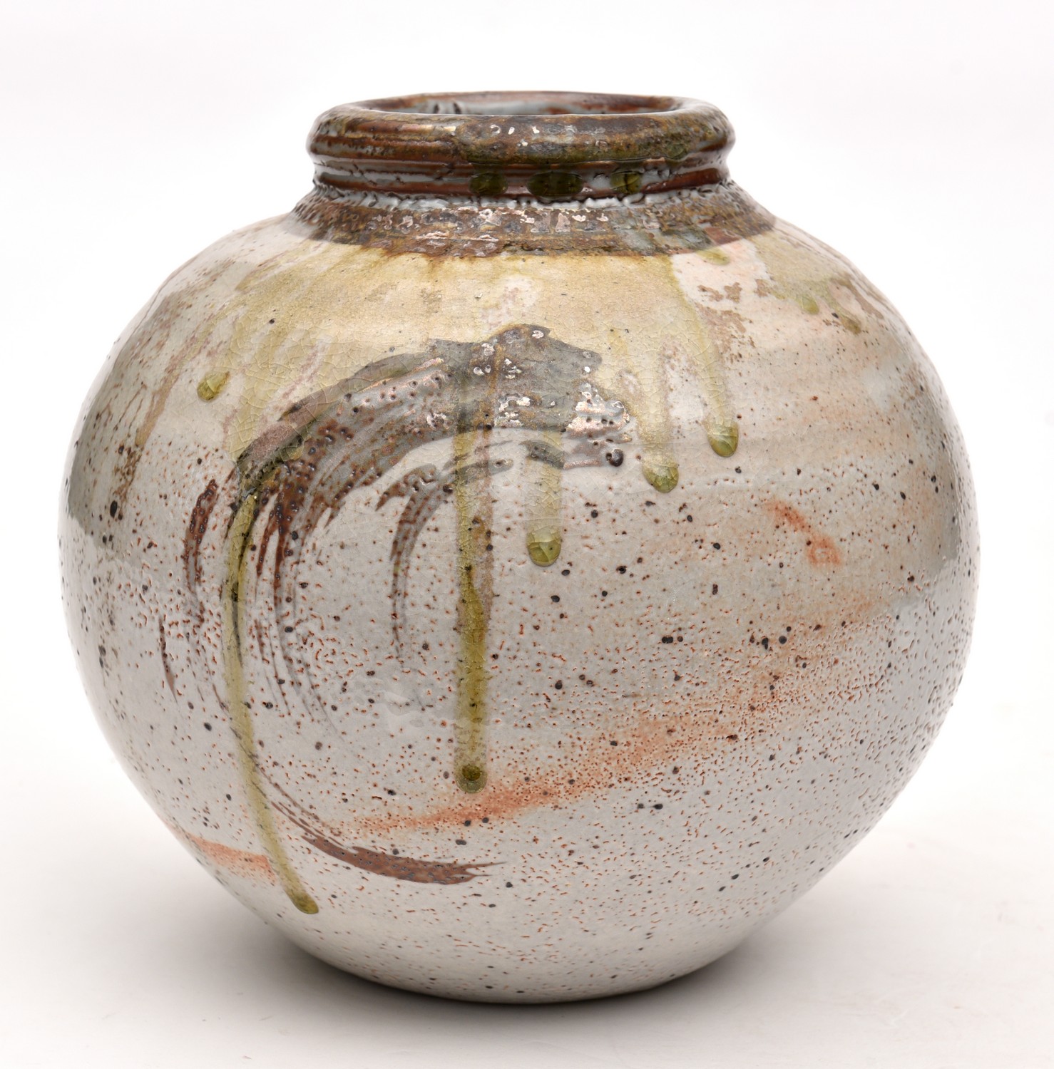 A SERGIO SILL LARGE WOOD FIRED OPEN NECK VASE - 26.1 X 27.8 CM