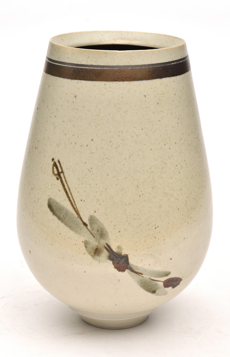 A VIC GREENAWAY BAULSTER VASE WITH DRAGONFLY AND GILT - 25.4 CM HIGH