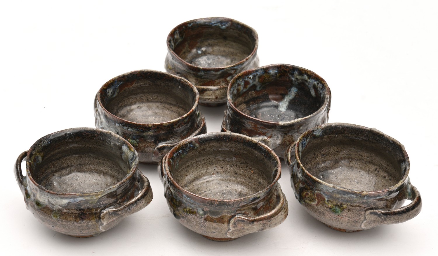 A SET OF SIX COL LEVY TWIN HANDLED BOWLS - 18.3 CM HIGH