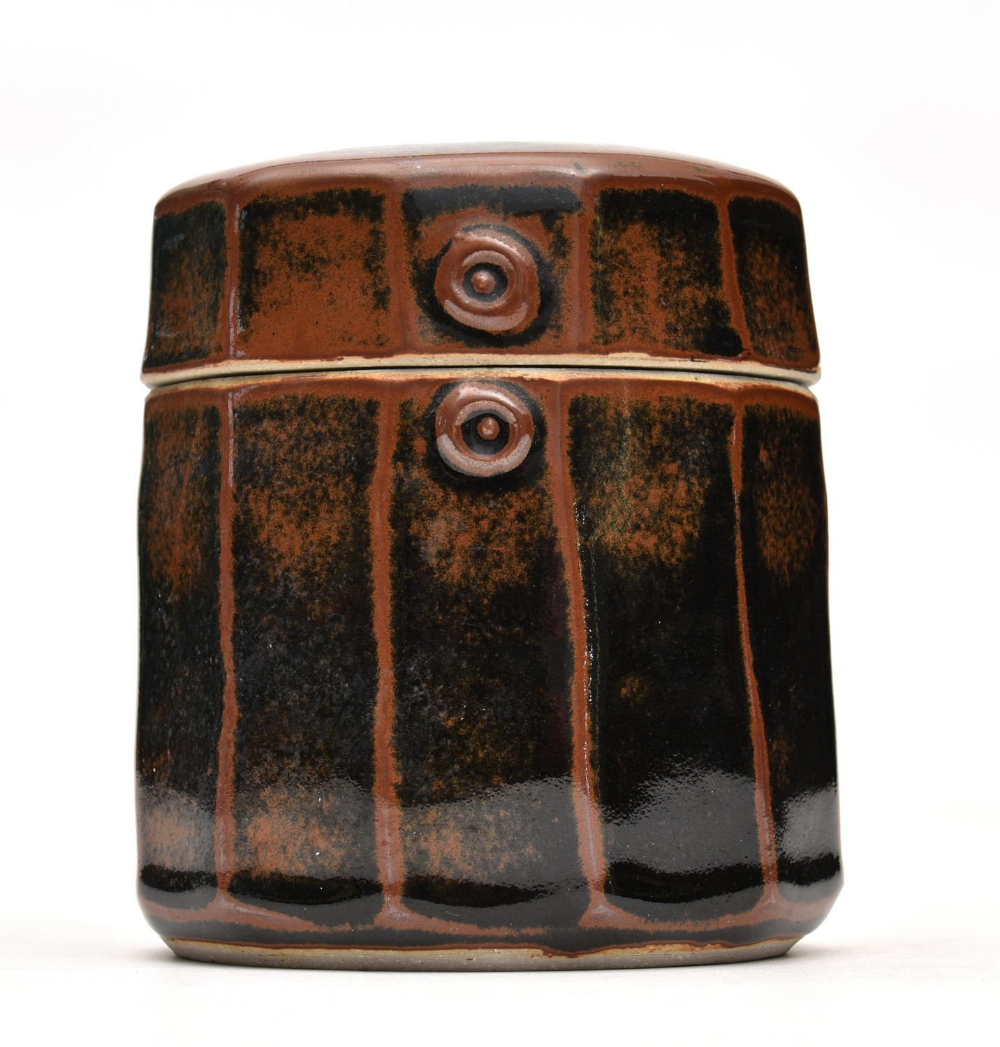 A REG PRESTON LIDDED CONTAINER - 14 CM HIGH