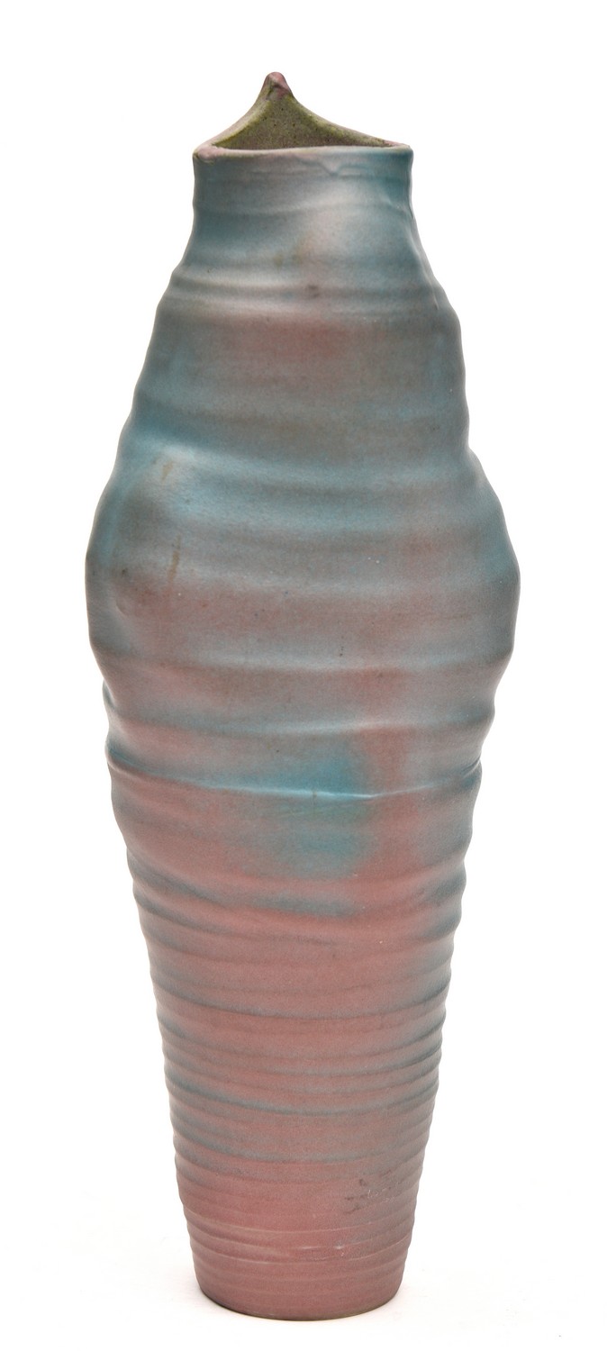 A DAVID POTTER RUBBED VASE IN PASTELS, 1980S - 36.8 CM HIGH