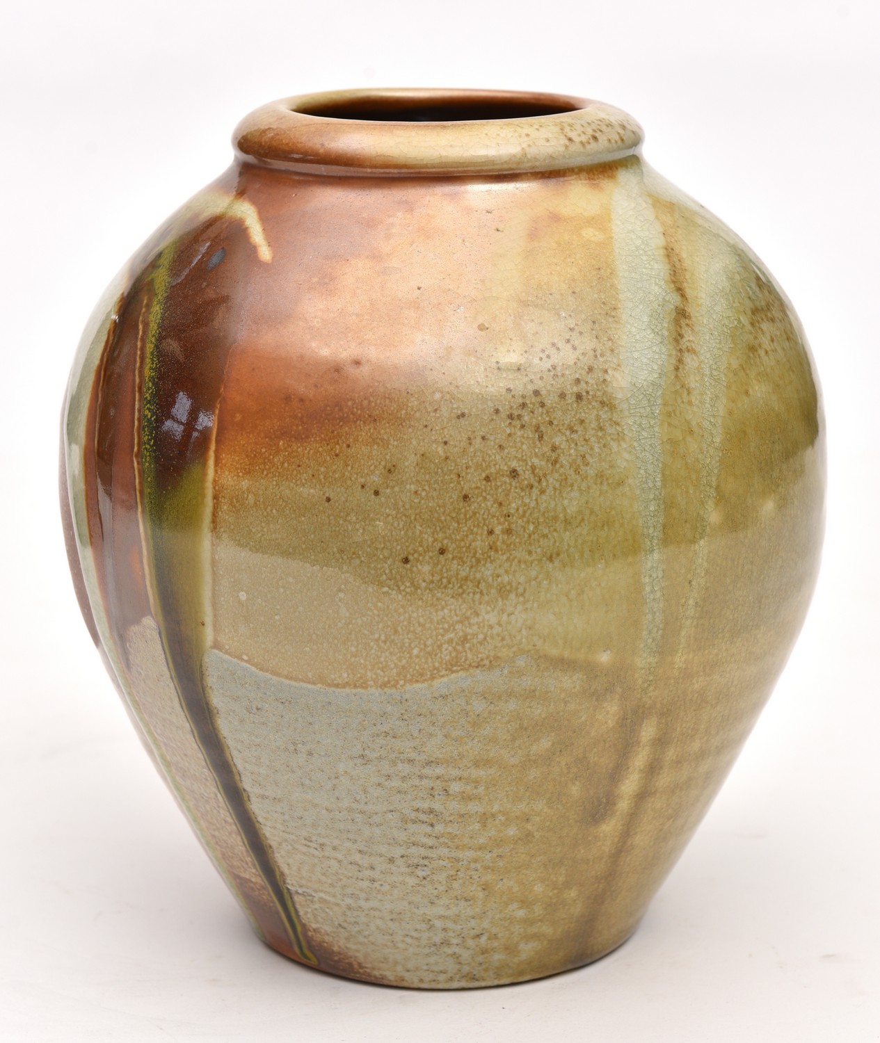 A ROBERT BARRON EARTHENWARE OVOID POT - 25.2 CM HIGH