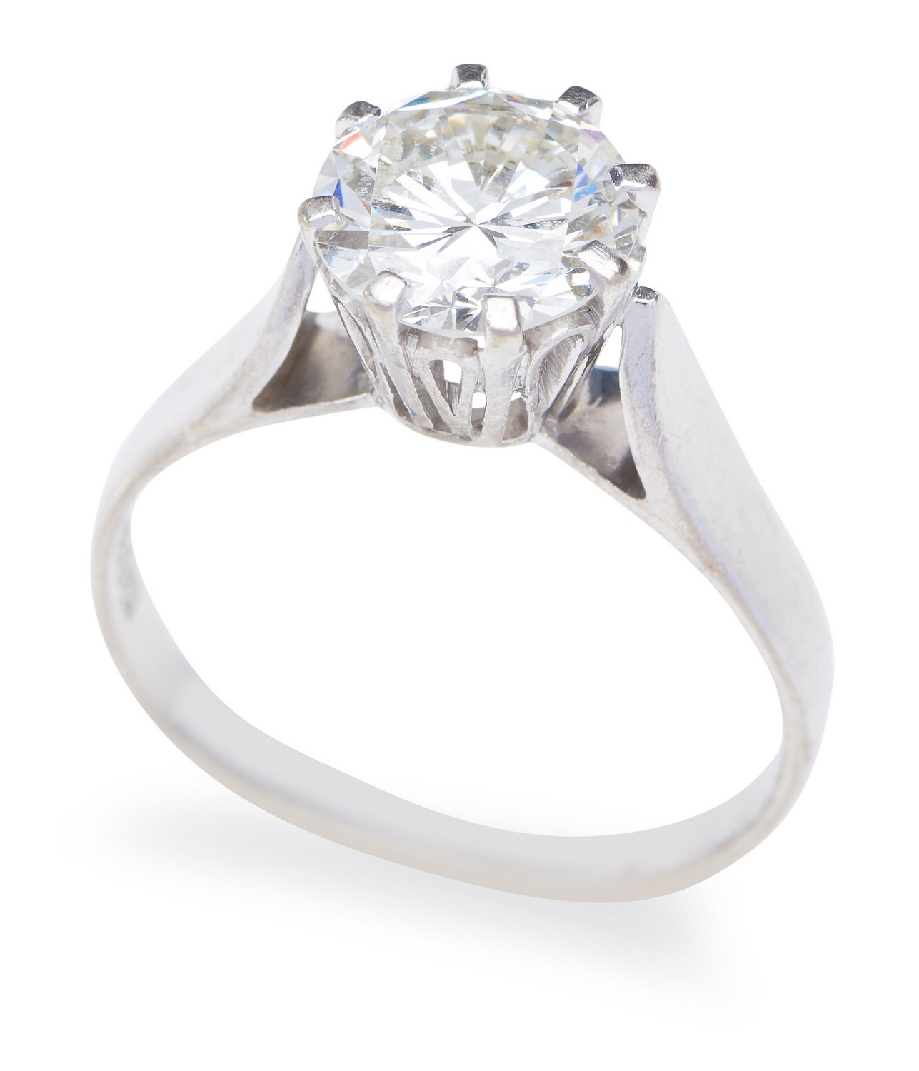 The round brilliant cut diamond weighing 2.35cts, in an eight claw setting, in 18ct white gold, ring size P 1/2.
