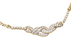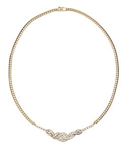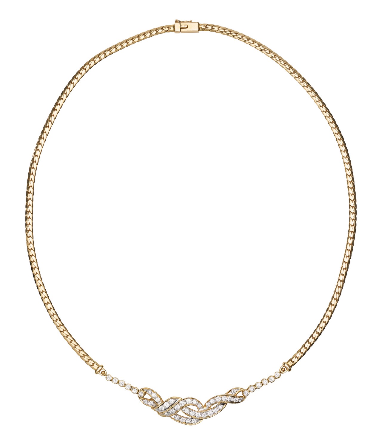 Featuring a central scrolled panel set with round brilliant cut diamonds totalling an estimated 1.48cts, in 18ct gold, total length 410mm.