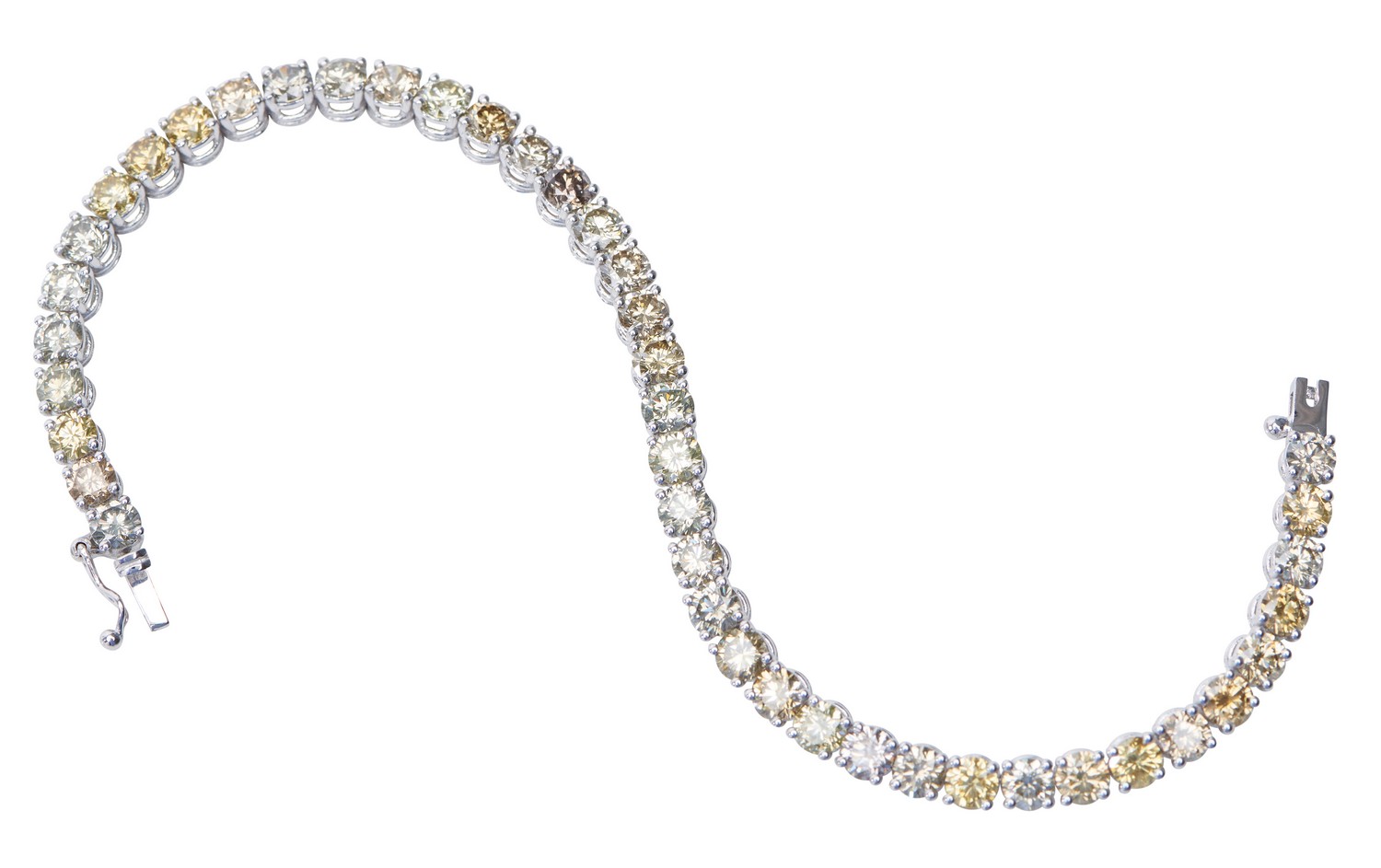 The bracelet presents in excellent, as new condition. Diamonds are varied in colour with clarity range estimated from VS- SI2.