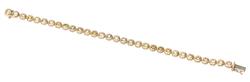 A COLOURED DIAMOND LINE BRACELET - Comprising thirty one yellow and champagne round brilliant cut diamonds totalling 7.89cts, in 18ct gold, total length 180mm.