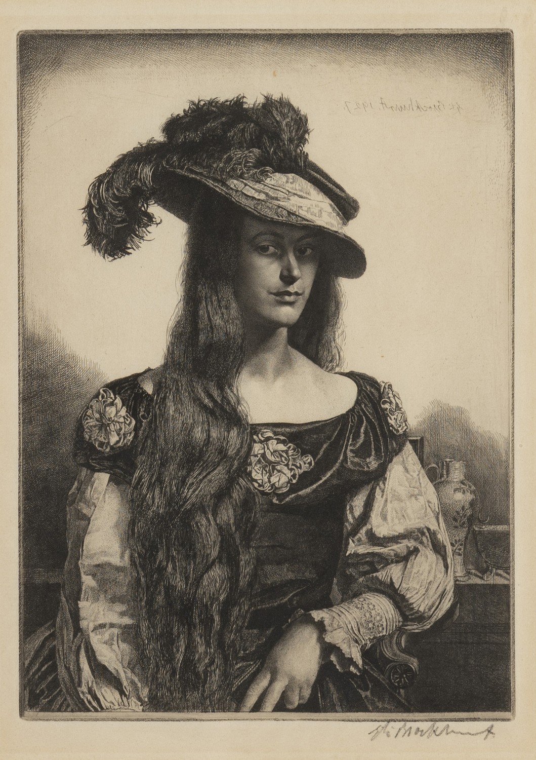 This work is in good condition. The work has yellowed and discolured slightly, which is consistent with the age of the print. There are two very small brown marks on the paper surface. This work has not been inspected out of the frame. The work is well framed.