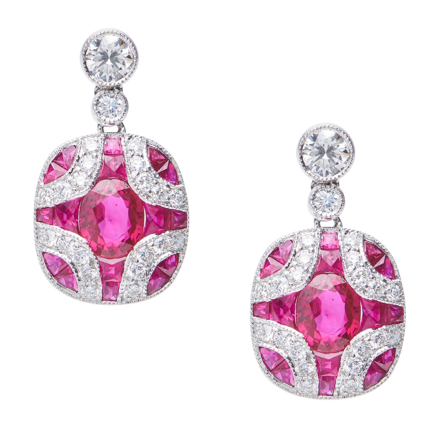 The earrings present in as new condition. Rubies and diamonds are all of a good commercial grade.