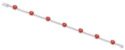 Of sectional design, featuring nine oval coral set links, spaced by round brilliant cut diamonds totalling 1.85cts, in 18ct white gold, total length 180mm.