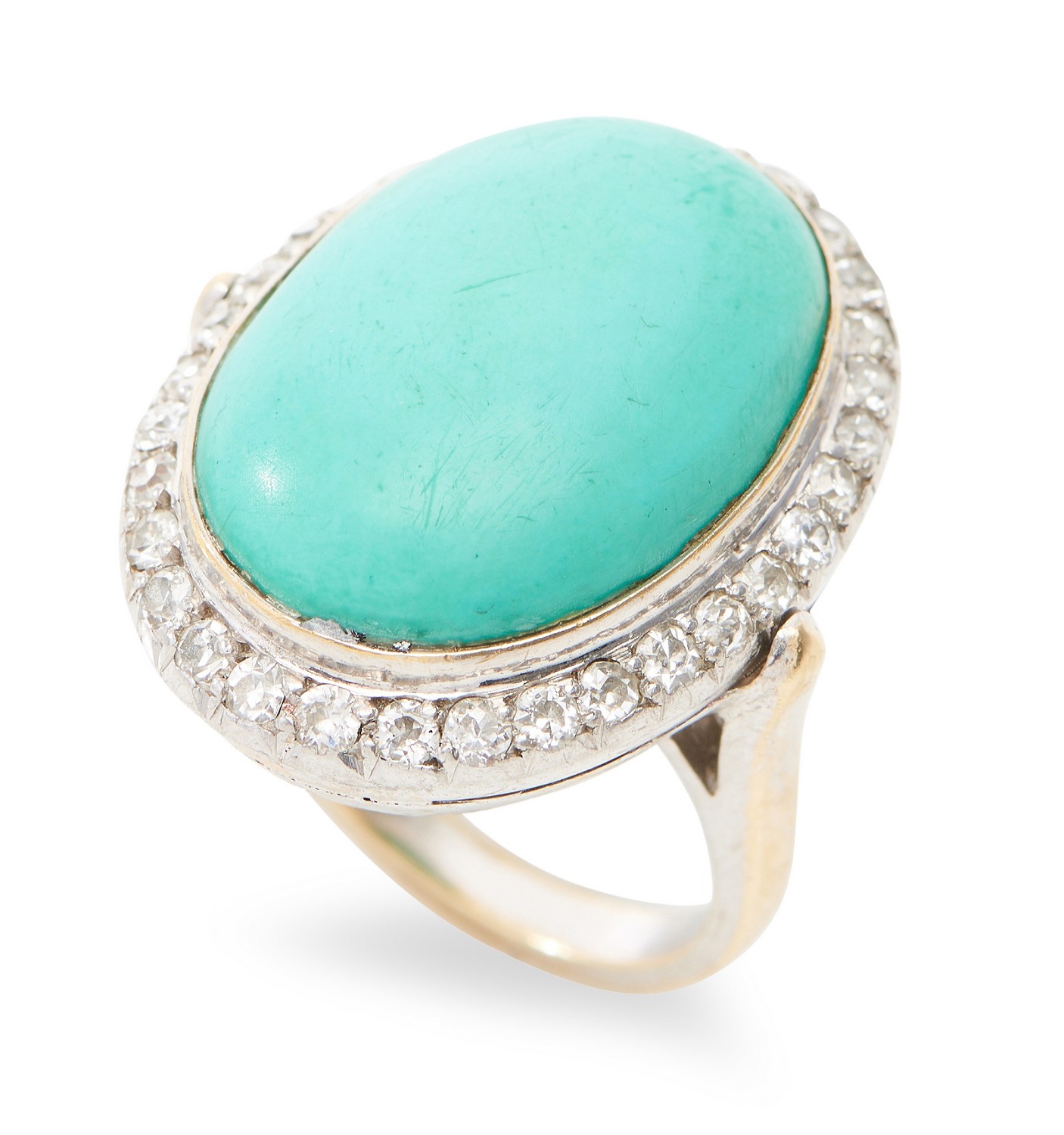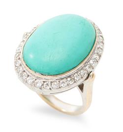 The ring presents in good condition, with some evidence of wear to the surface of the turquoise. It appears the ring may have been rhodium plated, with some residual rhodium to the sides of the shank.