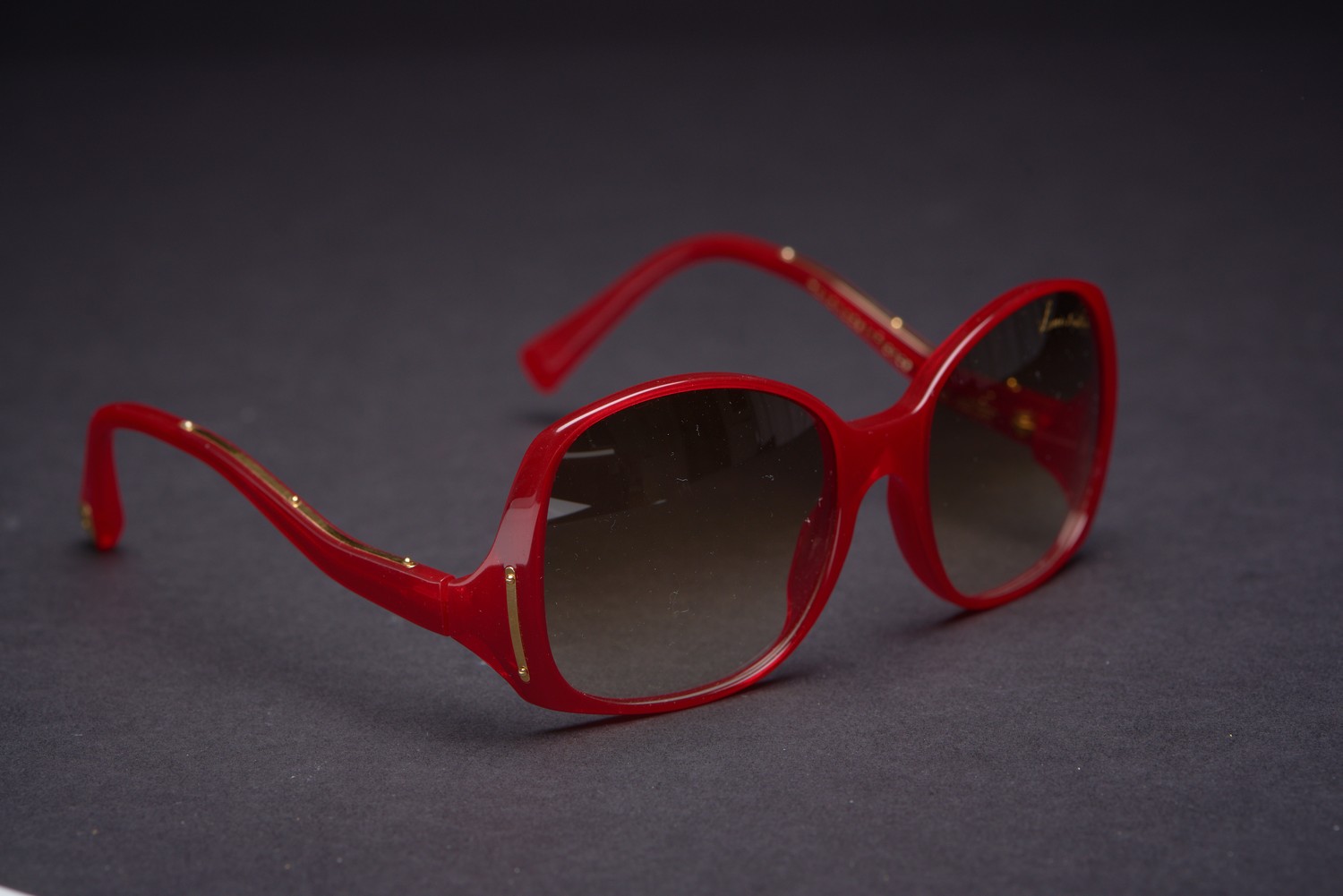 Styled in red composite with gold metal finishes.