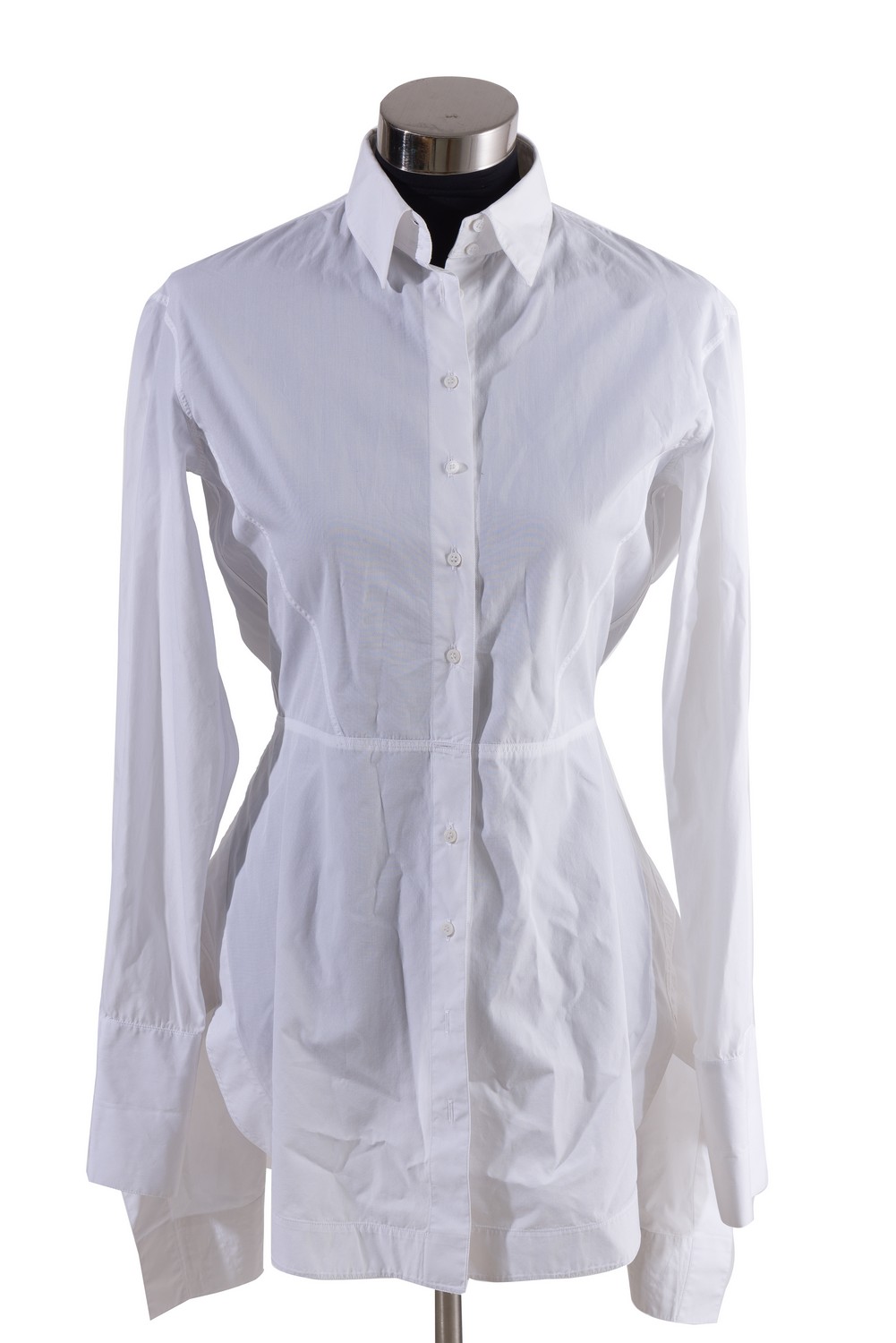Styled in white cotton, labelled size 42, original tags attached, RRP $1,599