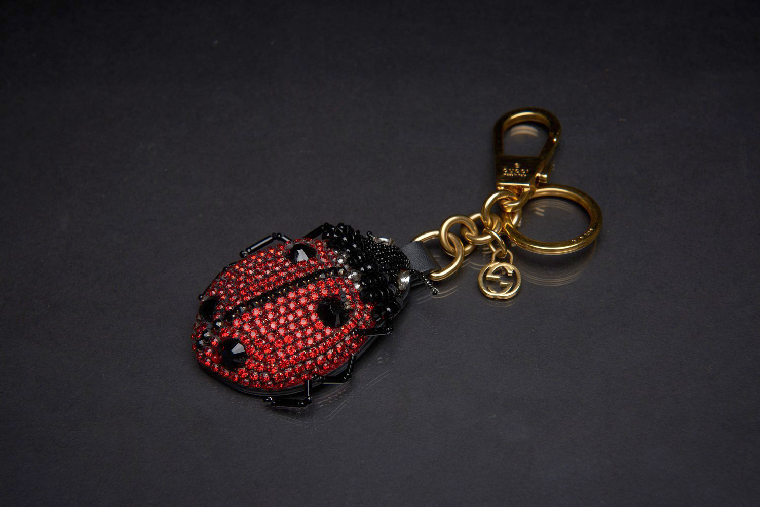 Styled in rhinestones as a ladybird, with gold metal hardware, 7 x 4cm, boxed.