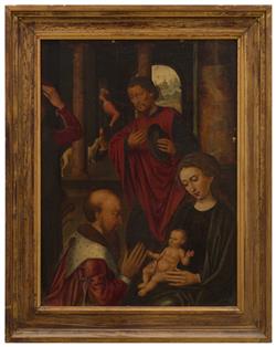 The work is in fair to good condition consistent with age. Losses of pigment in three main areas around the outer edges (two upper edge, one left hand edge). Under UV light, there is evidence of restoration - numerous spots of infill.