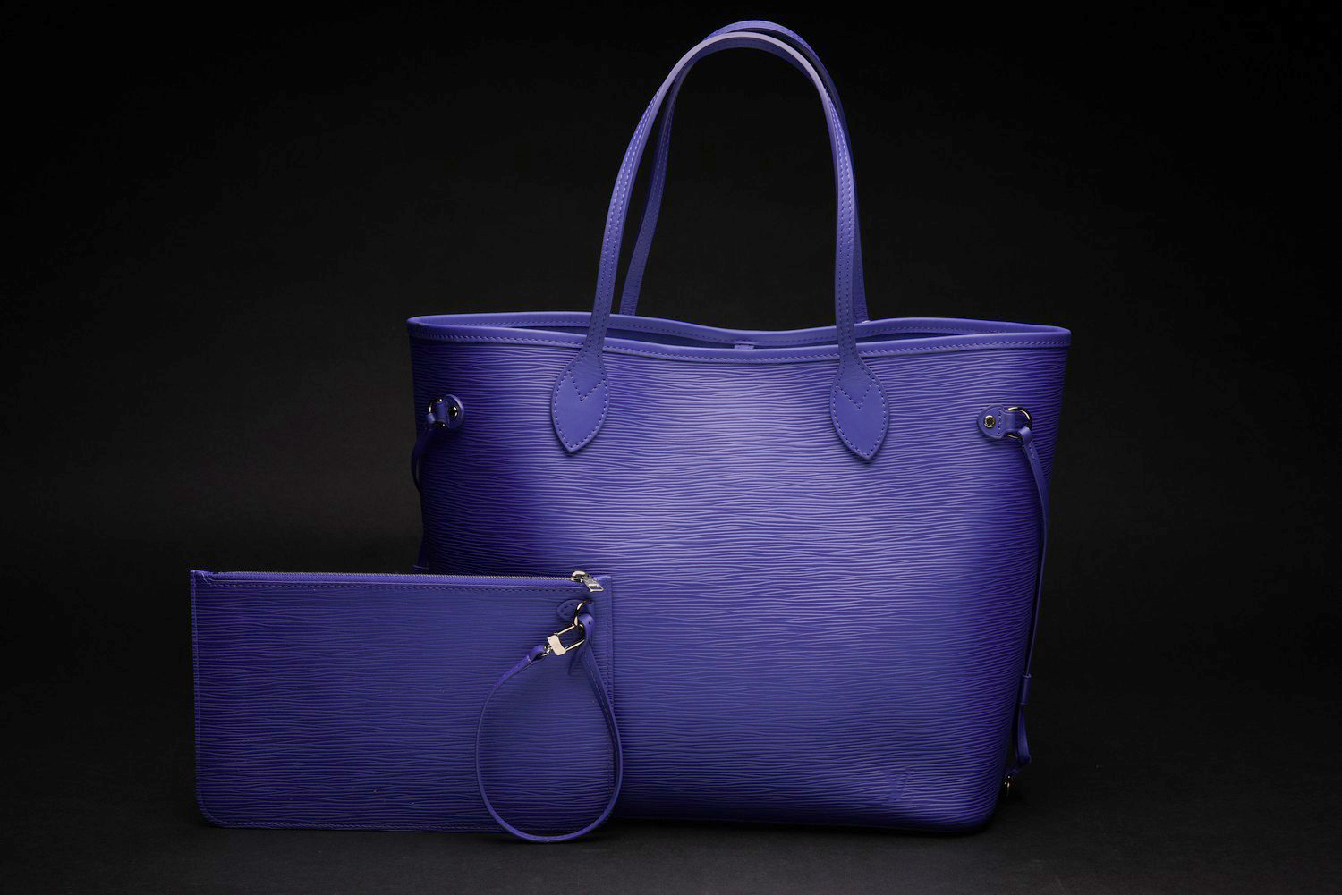 Styled in purple Epi leather with leather handles and silver metal hardware, 29 x 32 x 16cm.